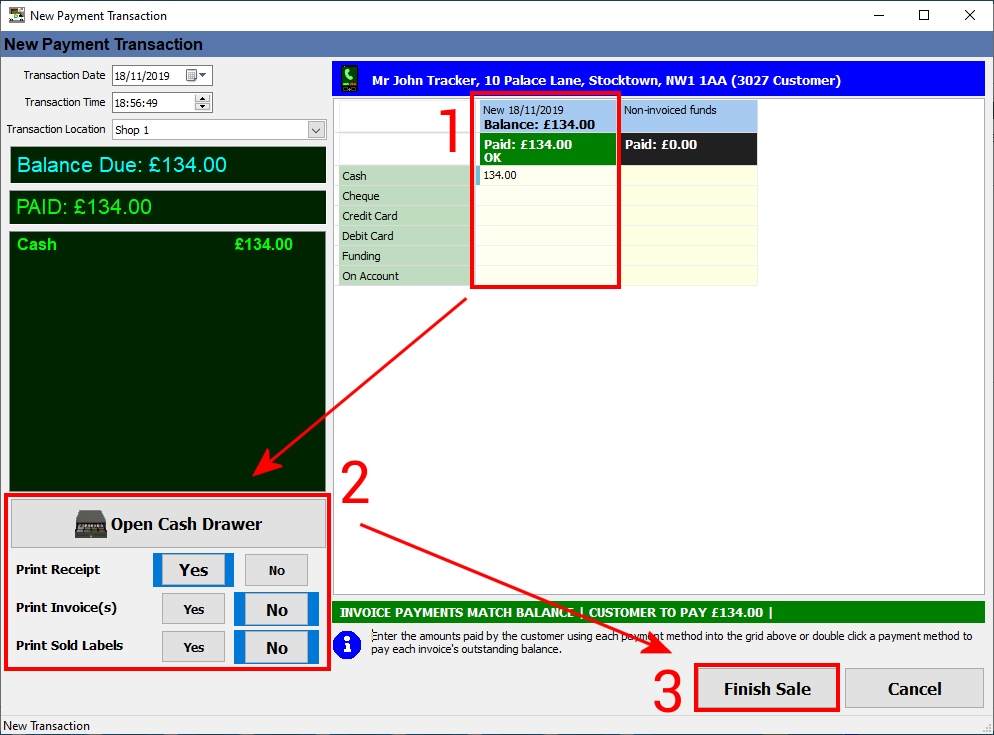 | Note: | The Register Transaction (without sale) button can be used to take money without raising an invoice. This is intended for cash donations or customer repayments and ignores the contents of the basket. |